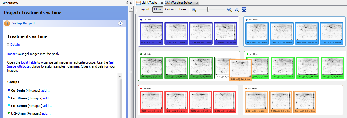 Create replicate groups for your experimental conditions and import the respective images.
